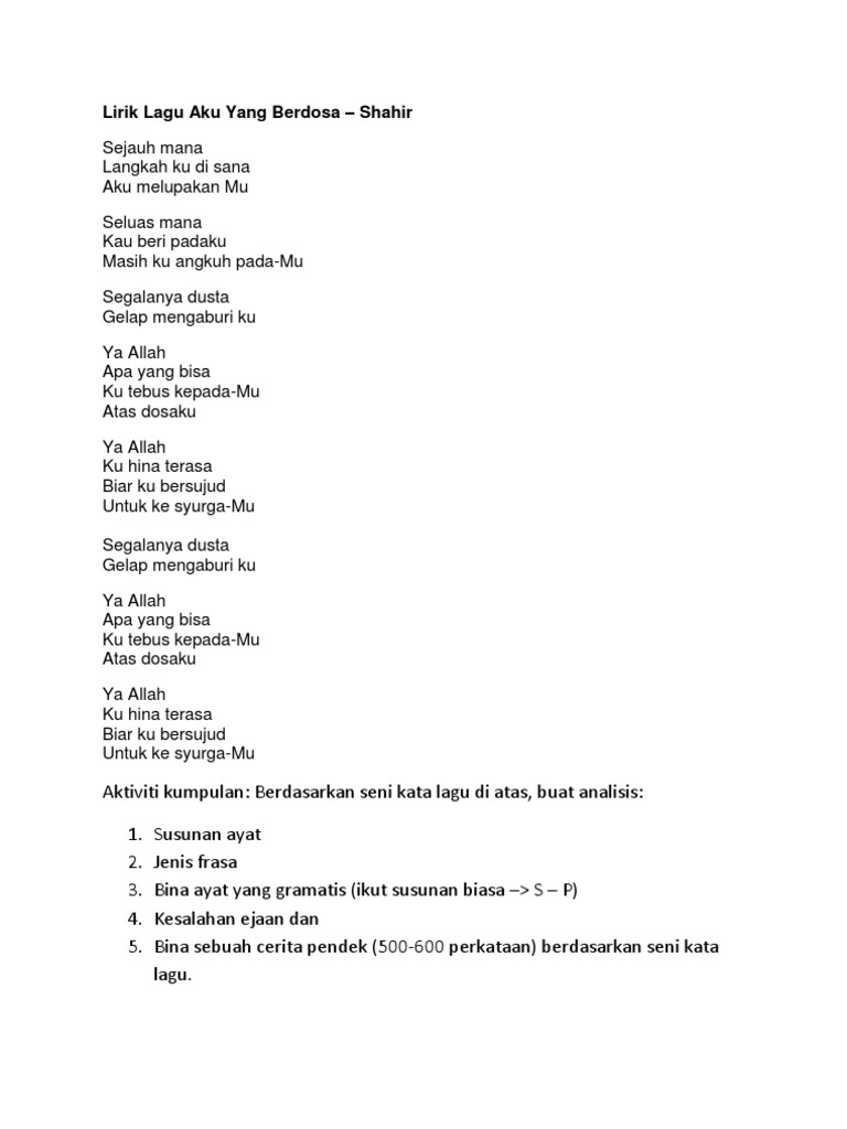 Lirik Lagu Aku Yang Berdosa J1 Pdf